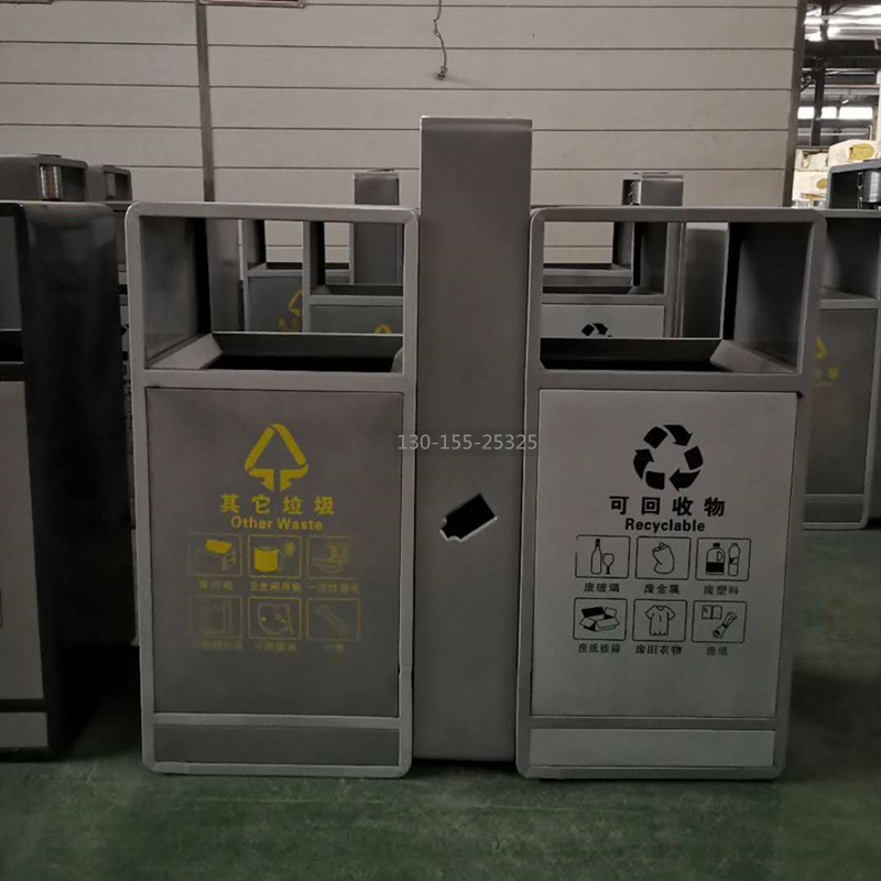 不銹鋼分類垃圾桶采用優質加厚不銹鋼制造,具有一定的防腐蝕功能,不易生銹,使用壽命更長,做工精致,外觀大方,適合各種戶外場所。